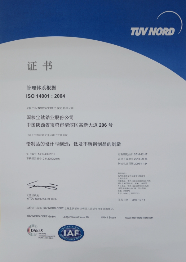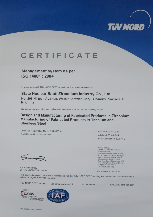 [上一頁] 國核鋯業所屬西北鋯管有限責任公司獲得..