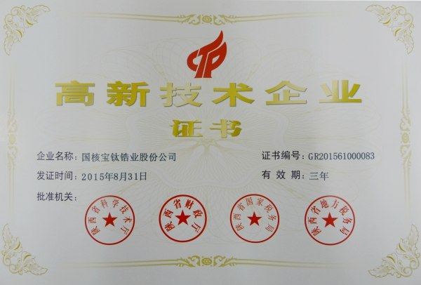 國核鋯業鈦及鈦合金加工產品生產許可資格