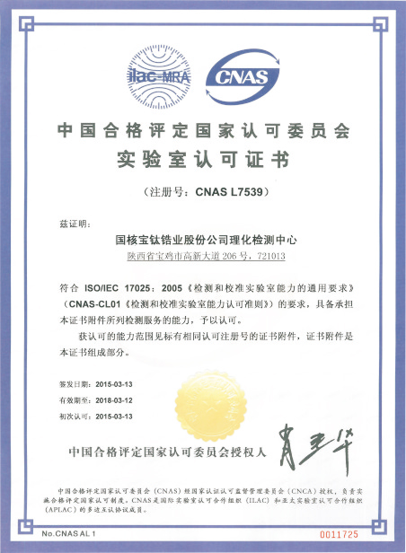 國核鋯業獲得“中國合格評定國家認可委員會(CNAS)實驗室認可證書”
